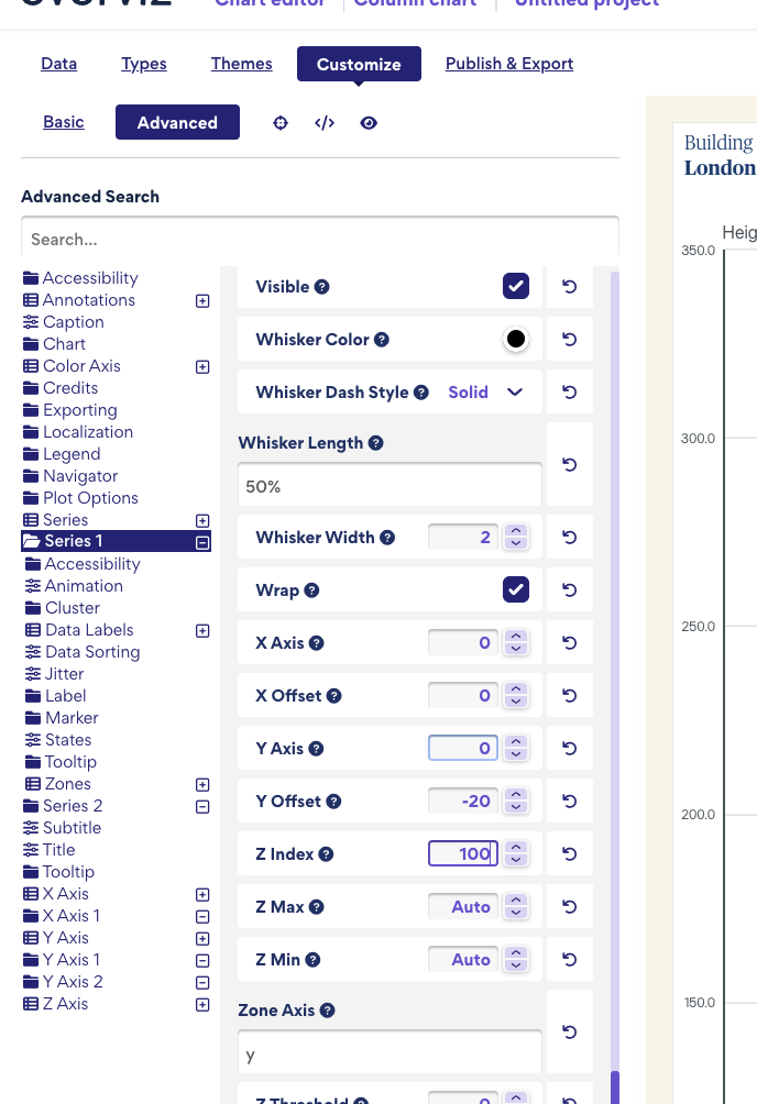 When I save and leave the chart and come back to it, my columns seem to disappear and i can’t see how to get them back (the series still appears in the legend)